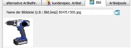 Das Artikelbild können Sie im Register Bild der Artikelstammdaten zuweisen.