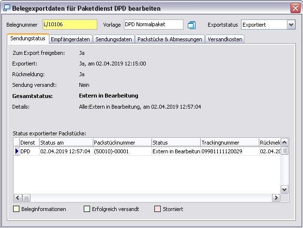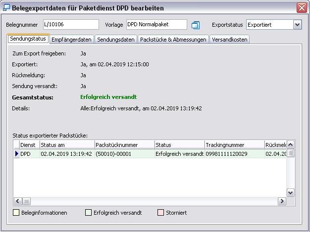 Exportstatus "Exportiert" - Erfolgreich versandt
