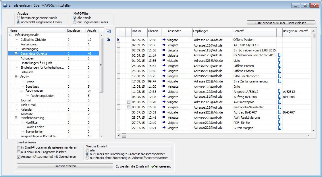 So können u.a. auch gesendete E-Mails eingelesen werden.
