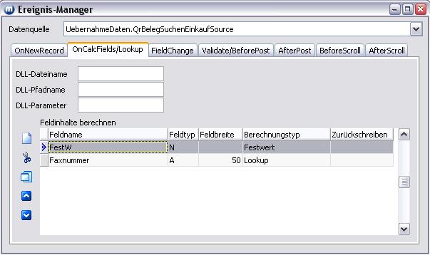 2. Wählen Sie das Register OnCalcFields/Lookup und klicken Sie dort auf den Button Neueingabe.
