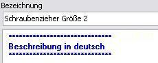 Standard-Bezeichnung und -Langtext für Artikel (Ausschnitt aus Artikelstammdaten)