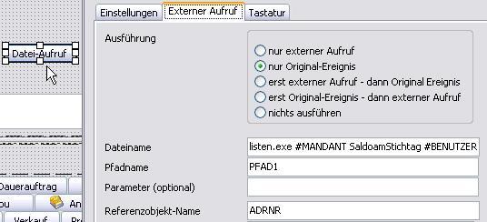 Es ist möglich, die Liste direkt in metropolis über einen Button aufzurufen. Über den Designer wird in das Formular Adresse Stammdaten ein Datei-Aufruf-Button eingefügt. Für diesen werden dann die Objekteigenschaften bestimmt. Im Feld Dateiname müssen die Parameter: