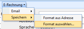 Über "Speichern" können E-Rechnungen erzeugt werden und auch entsprechend das Format ausgewählt werden: