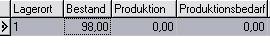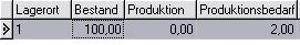 Ausschnitt aus dem Register Lager der Artikelstammdaten - Lagerdaten vor Durchführung der Produktion