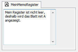 Beispiel: In den Adress-Stammdaten soll in einem eigenen neuen Register ein eigenes Memofeld eingefügt werden, wobei auf der Registerkarte angezeigt werden soll, ob sich in dem Memofeld Eintragungen befinden. Kein Eintrag = leeres Blatt, Eintrag = Blatt mit A. (Zu beachten ist, das auch Leerzeichen als Eintrag gewertet werden)