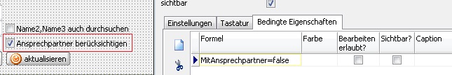 In bedingten Eigenschaften kann außerdem auch auf eine Checkbox zugegriffen werden (z.B. in der Adresssuche: "MitAnsprechpartner=false", hier heisst die Checkbox "MitAnsprechpartner").