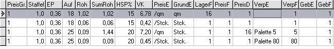 Die Grund- und Preiseinheiten des Verkaufspreises weichen z. T. von der Grundeinheit des Lagers bzw. der Preiseinheit des EP´s ab. Es wird mit Verpackungseinheiten gearbeitet.