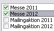 ODER: haben Sie mehrere Suchbegriffe markiert (Beispiel: Messe 2010 und Messe 2011), werden Ihnen alle Adressen angezeigt, denen mindestens einer der Suchbegriffe zugeordnet wurde (entweder Messe 2010 oder Messe 2011 oder beides). Sind einer Adresse mehrere der ausgewählten Suchbegriffe zugeordnet worden, wird die Adresse entsprechend mehrfach angezeigt.