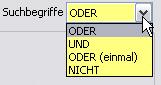 Im Listenfeld Suchbegriff stehen Ihnen zur Auswahl: "ODER", "UND", "ODER (einmal)" und "NICHT" zur Verfügung.