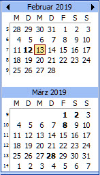 Sind Termine im Kalender eingetragen worden, sehen Sie dies u.a. anhand der fett dargestellten Wochentage im Kalenderbereich.