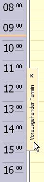 Klicken Sie auf der linken Seite auf Vorausgehender Termin, bewegen Sie sich zu einem vorhergehenden Termin. Mit dem Klicken auf der rechten Seite auf Nächster Termin bewegen Sie sich entsprechend zu dem nächst folgenden Termin. (Hinweis: Die Anzeige dieser Navigationsmöglichkeit wird nur angezeigt, wenn sich an dem gewählten Tag kein Termin befindet.)