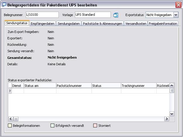 Der Gesamtstatus ist: "Warte auf Rückmeldung vom Paketdienstleister". (Zur Erinnerung: Damit Rückmeldungen erfolgen können, muss ein Häkchen im Kontrollkästchens Rückmeldungen auswerten in der Konfiguration, Register Belege Register Export zu Paketdiensten gesetzt sein.).