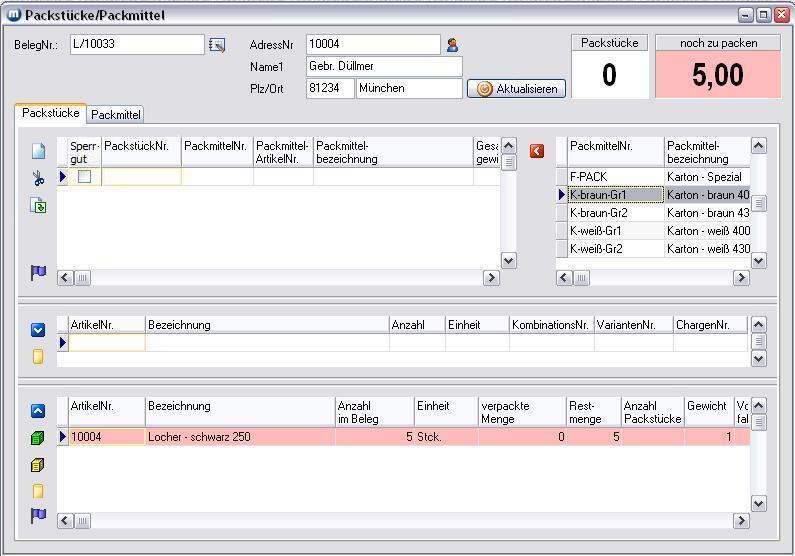 Sie haben nun mehrere Möglichkeiten, den Artikeln Packmittel zuzuordnen: