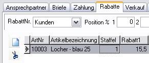 Ausschnitt aus Adress-Stammdaten - linke Tabelle im Register Rabatte.