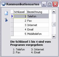 - Damit die Daten den Kommunikationsarten korrekt zugeordnet werden können, müssen im metropolis im Formular Kommunikationsarten (Menü Adressen/Parameter/Kommunikationsarten) folgende Einträge (in exakt der nachfolgenden Schreibweise) vorhanden sein: