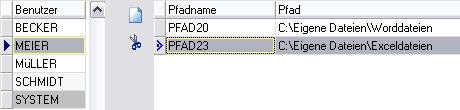 Verzeichnispfade können von einem Benutzer zu einem anderen Benutzer kopiert werden. Sind bereits anderslautende Pfadnamen für einen anderen Benutzer angelegt worden, werden diese nicht überschrieben, sondern es werden die kopierten Pfadnamen und Pfade zusätzlich in die Tabelle eingefügt.