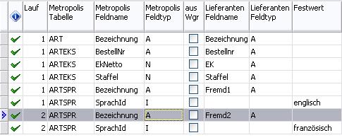 Ob eine korrekte Zuordnung von Lieferantenfeldern zu metropolis-Feldern erfolgt ist, kann automatisch nicht festgestellt werden. Wohl aber, ob überhaupt eine Zuordnung stattgefunden hat. Dies wird mit "OK" in der Spalte Status anzeigt.