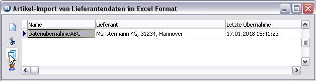 Um eine bestehende Datenübernahme aufzurufen, klicken Sie auf den Button Lieferantenübernahmedaten aufrufen oder klicken Sie doppelt auf die Zeile.