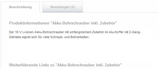 Darstellung der Artikelbezeichnung, Artikelbeschreibung in Shopware