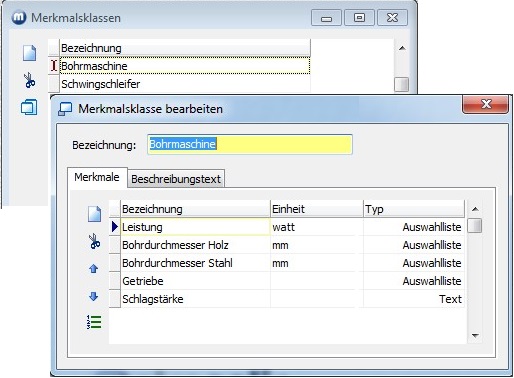 Die einzelnen Klassen, deren Merkmale und Werte, erfassen Sie in metropolis unter dem Menü Artikel/Parameter/Merkmalsklassen.
