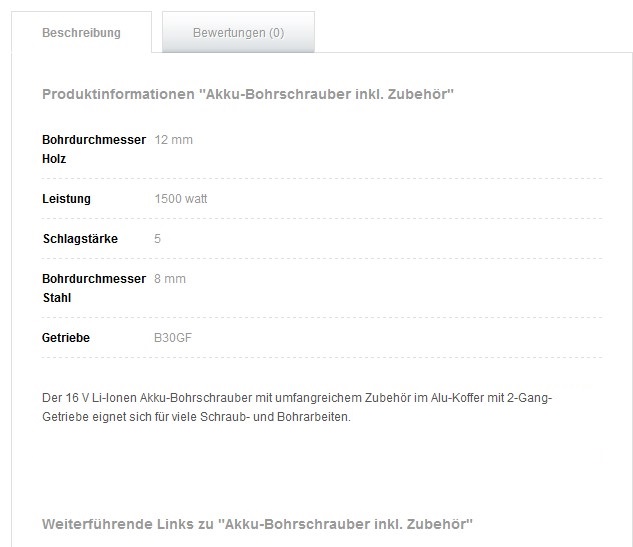 Falls Sie im Register Merkmalsklassen Merkmale zuweisen, werden diese in Shopware als Produktmerkmale übertragen und angezeigt.