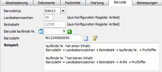 Der Barcode wird im Register Barcode der Artikelstammdaten zugewiesen.