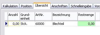 Der Abrufartikel wird 1 x mit der Anzahl "0.00" erfasst. In das Belegkopffeld Ihre AuftragsNr. geben Sie die Nummer des Kundenauftrages ein.
