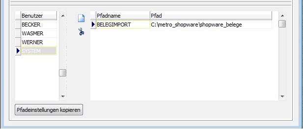 Für den Belegabruf aus Shopware und den Import nach metropolis, muss in metropolis unter Dienste/System/Pfade der Pfad (Spalte Pfadname) BELEGIMPORT angelegt werden.