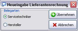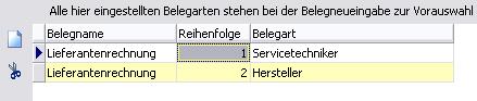 Bei der Neueingabe einer Lieferantenrechnung werden diese - so angelegten Belegarten - zur Übernahme angeboten. Beispiel: