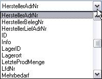 Wählen Sie aus dem Listenfeld das gewünschte Datenfeld (hier im Beispiel: HerstellerAdrNr) aus.