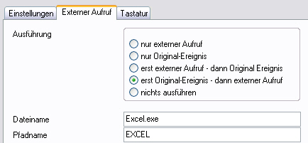 Sie haben die Möglichkeit, vor und/oder nach dem Aufruf eines bestehenden oder selbst definierten Menüs, eine Windows-Datei aufrufen zu lassen.
