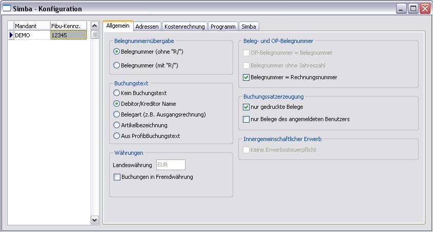 Im Register Kostenrechnung kann angegeben werden, welche Parameter berücksichtigt werden sollen. Es stehen zur Verfügung: KST/KTR berücksichtigen, Kostenstellen aus Niederlassung u. Abteilung bzw. Kostenstellen aus Niederlassung u. Provisionsnummer.