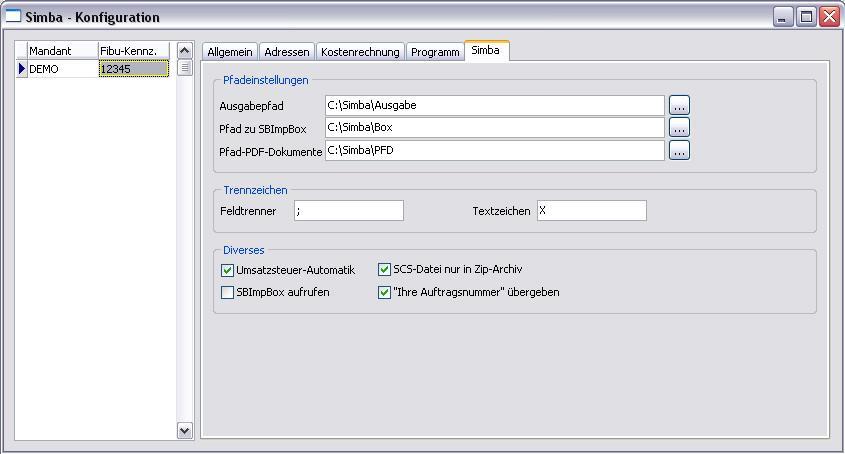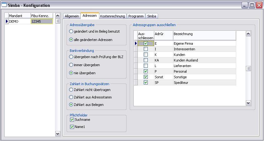 Im Register Programm werden die Datumswerte für die Datenübernahme bestimmt.