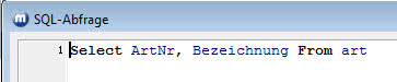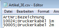 Beispiel einer erzeugten CSV-Datei (Ausschnitt) gemäß der SQL-Anweisung SELECT ArtNr, Bezeichnung FROM art - Aufruf über "Editor".