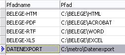 Zuerst muss ein Verzeichnis für den Datenexport eingerichtet werden. Dann wird im Menü Dienste/System/Pfade der Verzeichnispfad angegeben. Der Pfadname muss DATENEXPORT lauten!
