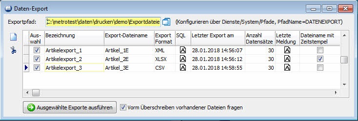Dateiname mit Zeitstempel: Der Dateiname (z.B.: Artikel_1E.xml) wird um die Zeitangabe der Erstellung ergänzt (z.B.: Artikel_1E-vom 2018-01-28 14-56-07)