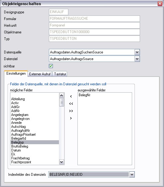 Beispiel: Sie wollen eine Belegsuche (z. B. Auftragssuche) nach Ihren eigenen Vorstellungen gestalten. Die Auftragssuche soll direkt im Auftrag aufgerufen werden. Nach der Auswahl eines Beleges soll das (neue) Suchenformular automatisch geschlossen werden.