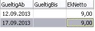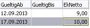 Beispiel (2): Einkaufspreise für begrenzten Gültigkeitszeitraum anzeigen