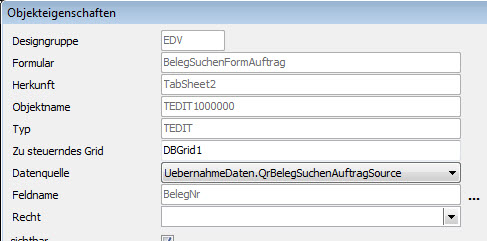 - zu steuerndes Grid (z.B. DBGrid1) - (Bei Auswahl des zu steuernden Grids wird automatisch die Datenquelle gewählt und angezeigt.)