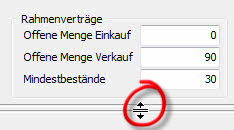 In den Artikelstammdaten - unterhalb des Splitters können Sie sich die Rahmenvertragsmengen für den Verkauf bzw. Einkauf ansehen. Ziehen Sie dazu den Splitter nach unten. Beispiel: