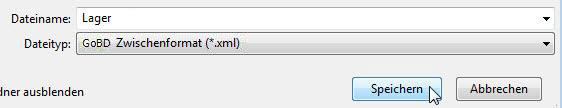 Es öffnet sich das Formular Speichern unter mit dem Vorgabe-Dateityp GoBD Zwischenformat (*.xml). Wählen Sie zuerst das Verzeichnis in das die Zwischendatei gespeichert werden soll (z.B.: metro/GOBD). Geben Sie dann in das Feld Dateiname eine Bezeichnung entsprechend der zu exportierenden Daten ein. Klicken Sie auf den Button Speichern.