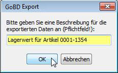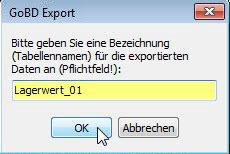 Klicken Sie danach auf OK, erfolgt der Datenexport. Es werden die Dateien *.xml und *.csv erstellt. In diesem Beispiel also die Dateien Lager.xml und Lager.csv. Die Lager.csv wird sofort geöffnet (z.B. als eine Exeldatei). Diese csv-Datei enthält die Tabellendaten. Die xml-Datei enthält die zugehörige Datenquelle, den Dateinamen, die Dateibeschreibung und die Dateistrukturbeschreibung.