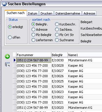 In der Tabelle im Formular Suchen Bestellungen (Menü Einkauf/Bestellung/Suchen) soll zusätzlich die Faxnummer jeder Adresse angezeigt werden.