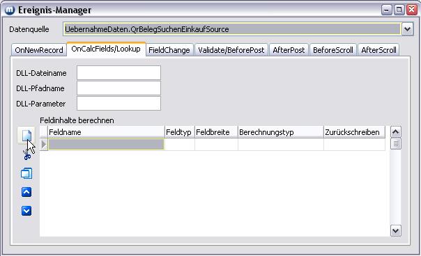2. Wählen Sie das Register OnCalcFields/Lookup und klicken Sie dort auf den Button Neueingabe.