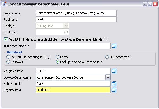 Feld aus anderer Datenquelle in Tabelle einbringen - (Ereignismanager-Register: OnCalcFields/Lookup