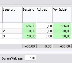Die Summenzeile zeigt den Bestand aller Lagerorte. Das Feld SummeVielLager jedoch nur die Bestände aus den Lagerorten 1 + 3.