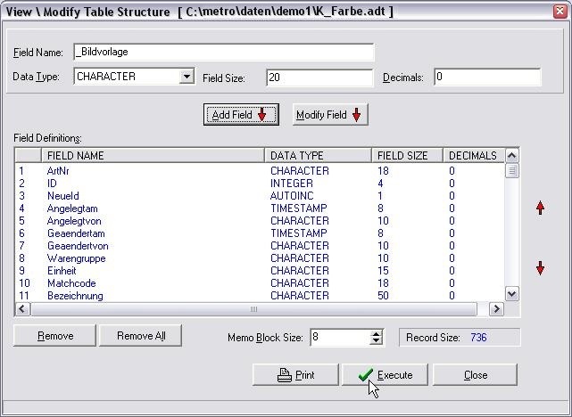 5. Nach den Eintragungen klicken Sie zuerst auf den Button Add Field, dann auf Execute.