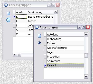 Beispiel: Zuerst wurde das Formular Adressgruppen suchen aufgerufen, dann das Formular Abteilungen. Das Formular Adressgruppen suchen ist inaktiv. Das Formular Abteilungen ist aktiv.