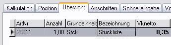 In allen nachfolgenden Beispielen ist der Übernahmeartikel in den Beleg immer: "Stückliste".