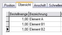 - Im Ein- und Verkaufsbeleg sollen "Elemente A" und "B1", "B2" angezeigt werden.